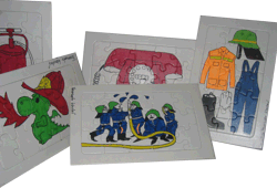 | Selbstgestaltete Puzzle mit Feuerwehrmotiven zur spielerischen Motivation der Teilnehmer zwischen verschieden Erklärungen. | ![]() |